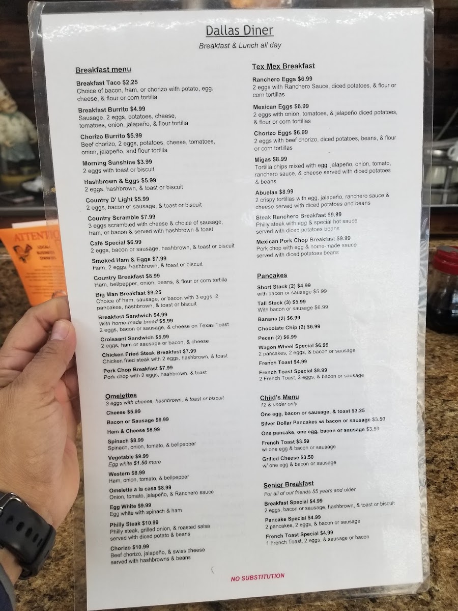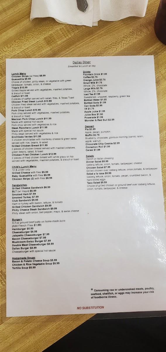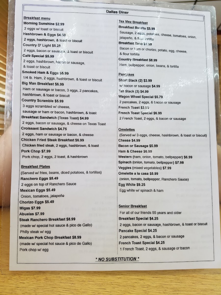 Dallas Diner Menu